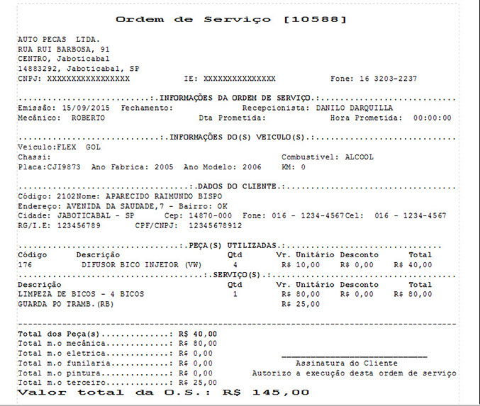 4 - Impressão de Ordem de Serviço